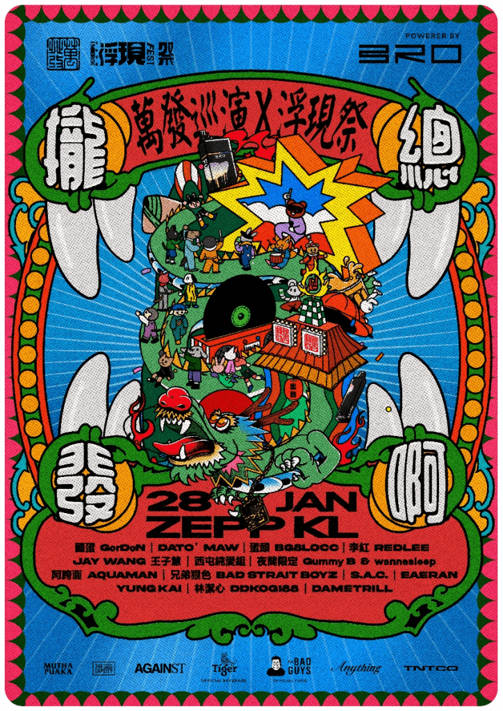 这次浮现音乐嗅到嘻哈劲道在市场上散发的气息,当疫情解封,立即与马来西亚嘻哈品牌“万发”、2022年才在吉隆坡开幕的Zepp Live House,以及Zepp的母公司日本Sony Music共同合作,于2024/1/28在吉隆坡筹备举行第一届“浮现祭 × 万发巡演:拢总发啊”。