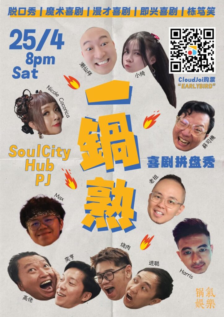 在忙碌与不确定交织的时代,一群来自不同背景的表演者,选择在下班之后站上舞台,用笑声回应现实。《一锅熟》喜剧拼盘秀将于2026年4月25日(星期六)晚上8时,在八打灵再也 SoulCity Hub上演,为雪隆观众带来一场融合多种喜剧形式的现场演出。